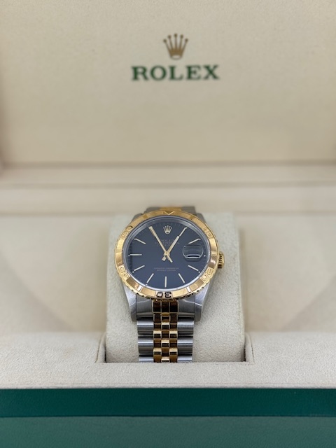 Case:   Stainless steel  and gold with Turn-O-Graph bezel, 36-mm